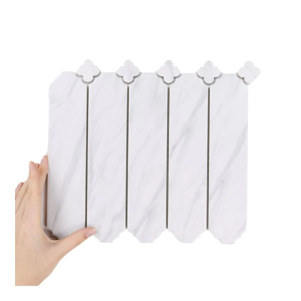 Kolekcja Cecile to wyjątkowa propozycja, powstała we współpracy z architekt Magdą Fornal, która sięgnęła po ponadczasowy motyw koniczyny, znany z dekoracji pałacowych i architektury Alhambry. Delikatnie zaokrąglone formy inspirowane naturą i sztuką ornamentalną tworzą wzór, który łączy w sobie subtelność i wyrazistość. Inspiracją dla Cecile Marble Matowy były właśnie klasyczne arabeski i geometryczne zdobienia, które od wieków symbolizują harmonię, piękno i elegancję. Architektoniczny charakter i ozdobna forma sprawiają, że kolekcja doskonale wpisuje się zarówno w nowoczesne wnętrza, jak i w aranżacje czerpiące z tradycji.
